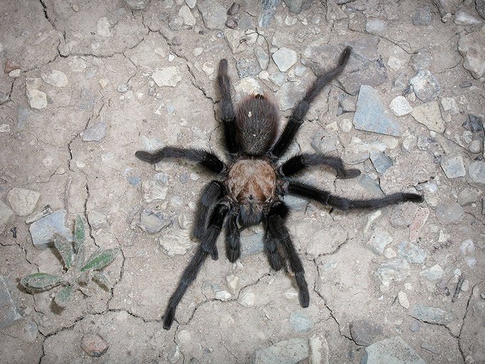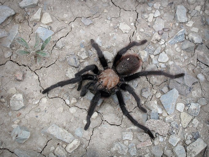 It all started on the way to the trash can... While Mr. Frink was taking the trash up the hill to the trash can, he encountered a brown tarantula...who just happened to wait around long enough for him to get his camera. |